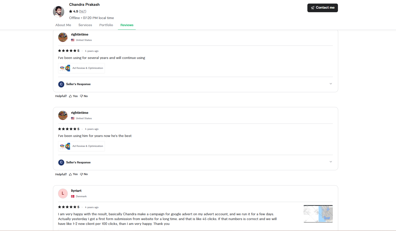 This is Chandra as a professional Google Ads Freelancer. More than 7 years of relevant experience combined. Based out of India and serving USA, Canada, UK, Australia, as well as the rest of the world. Hire an experienced, certified Google Ads freelancer and save thousands of dollars.
